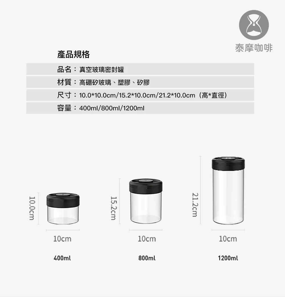 泰摩咖啡 玻璃密封罐-1200ML黑色